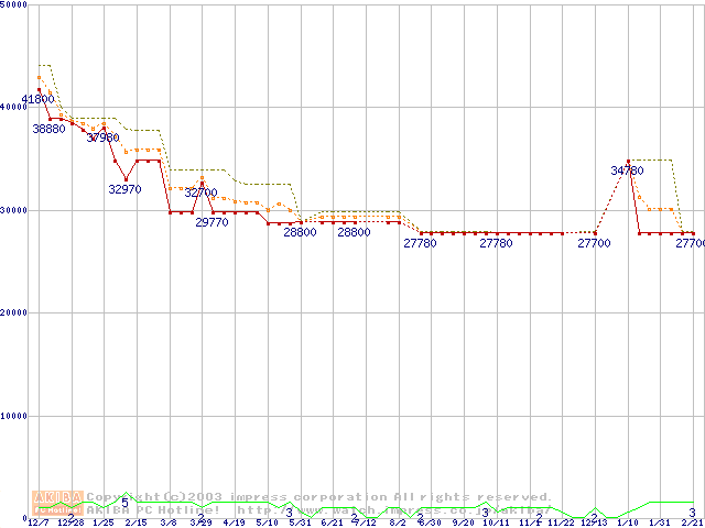 PC1066 DRDRAM RIMM4200(32bit)の最安値推移