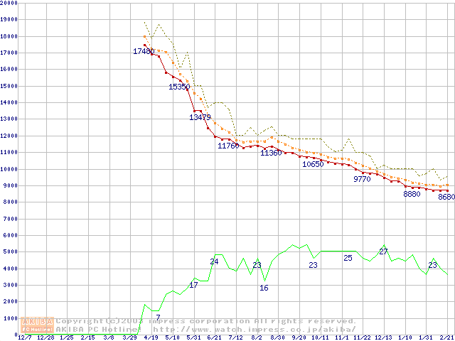 HDD主要製品の最安値推移