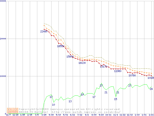HDD主要製品の最安値推移