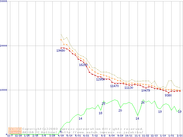 Barracuda 7200.7 (7200rpm,SerialATA,8MB,80GB/Platter,FDB)の最安値推移