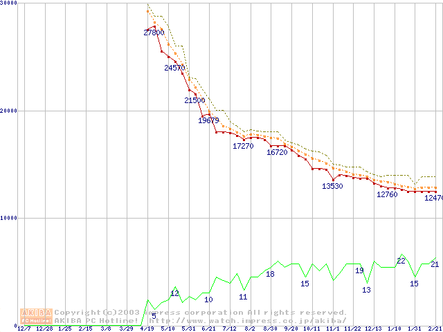Barracuda 7200.7 (7200rpm,SerialATA,8MB,80GB/Platter,FDB)の最安値推移