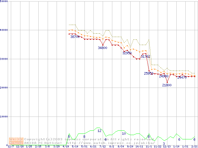 Opteron 240(1.4GHz) リテールパッケージの価格推移