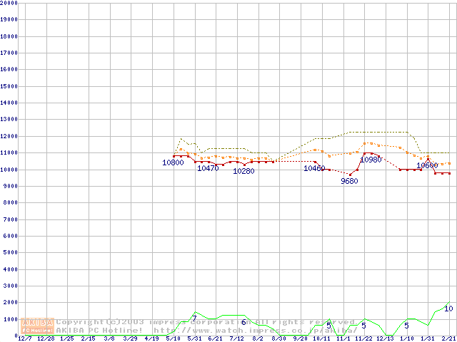 MKシリーズ (9.5mm,4200rpm,2MB,FDB,30GB/Platter)の最安値推移