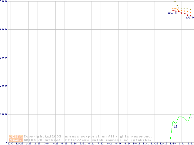 Athlon 64 3400+(2.2GHz,L2 1MB) リテールパッケージの価格推移