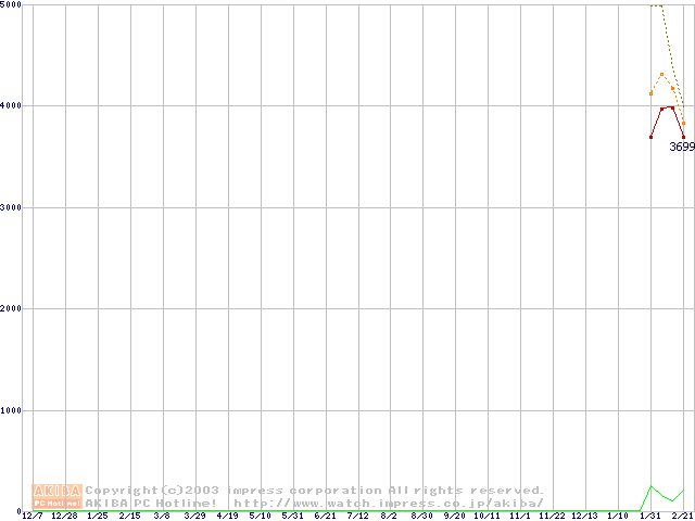 Socket A (OPGA,FSB 266MHz,L2 256KB,Thoroughbred)の最安値推移