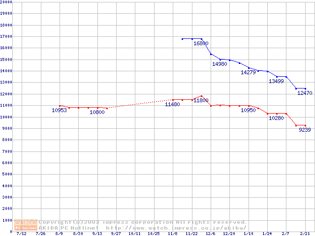 | [↑前グラフ]: | Momentusシリーズ (9.5mm,5400rpm,UltraATA/100,8MB,FDB)の最安値推移 |