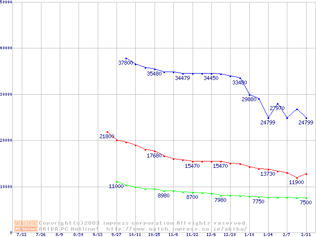 | [↓次グラフ]: | Deskstar 7K250 (7200rpm,UltraATA/100,FDB)の最安値推移 |