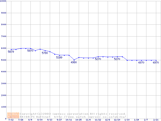 | [↑前グラフ]: | Barracuda 5400.1 (5400rpm,UltraATA/100,2MB,FDB)の最安値推移 |