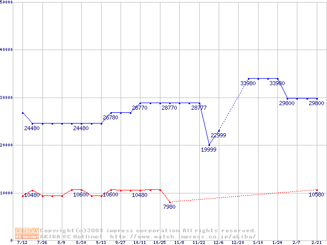 | [↑前グラフ]: | PC800-40 DRDRAM RIMMの最安値推移 |