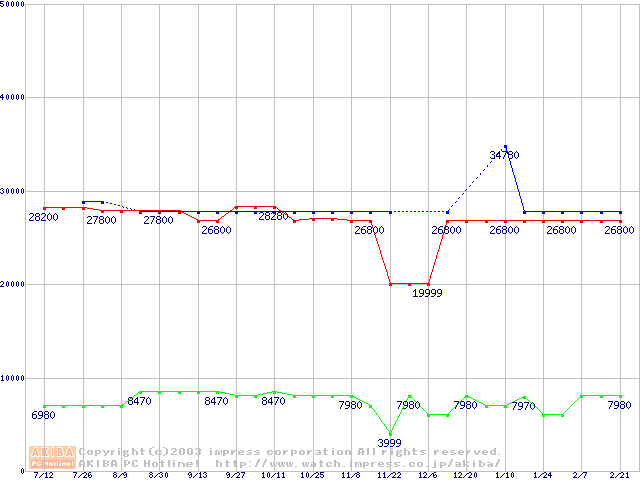| [↓次グラフ]: | Socket 478 (micro-PGA,FSB 800MHz,L2 1MB,Hyper-Threading,Prescott)の最安値推移 |