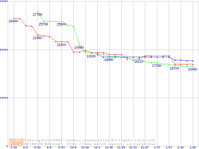 | [↓次グラフ]: | 2.5インチHDD 80GB以上(9.5mm厚)の最安値推移 |