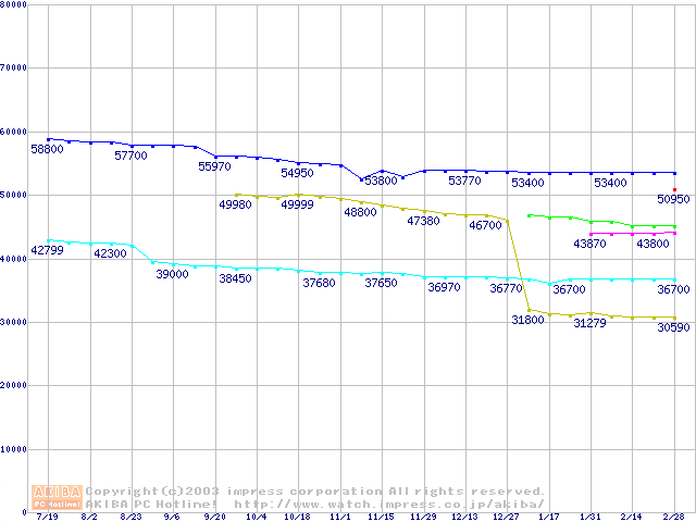 CPU主要製品(最安値3万円~6万円未満)の最安値推移