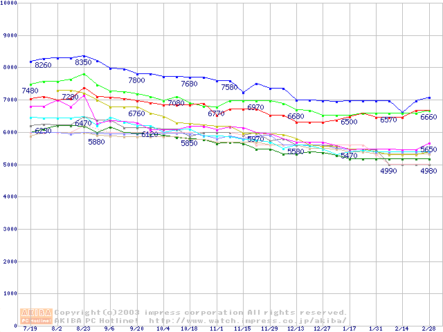 HDD 30GB~80GB未満の最安値推移