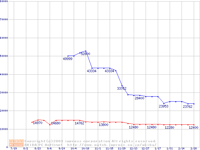 メモリ主要製品(最安値1万円以上)の最安値推移