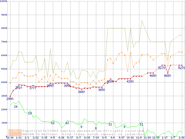 PC133 SDRAM DIMM CasLatency=2の最安値推移