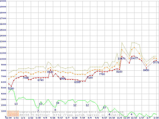 PC133 SDRAM DIMM CasLatency=2の最安値推移