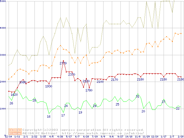 PC133 SDRAM DIMM CasLatency=3の最安値推移