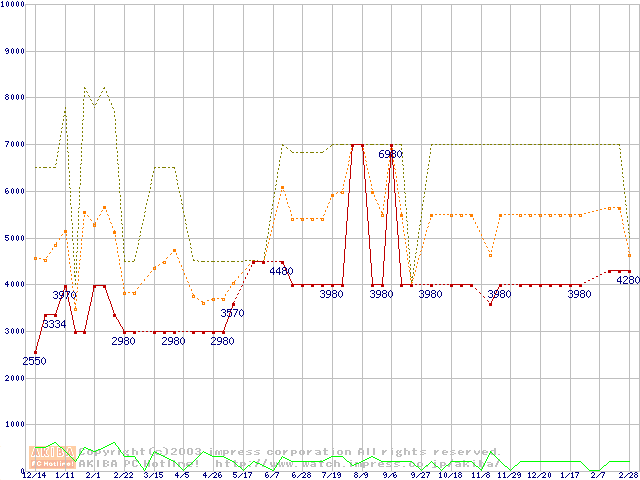 PC133 SDRAM 128MB(CL3) ECCの価格推移