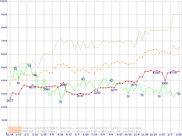 PC133 SDRAM DIMM CasLatency=3の最安値推移