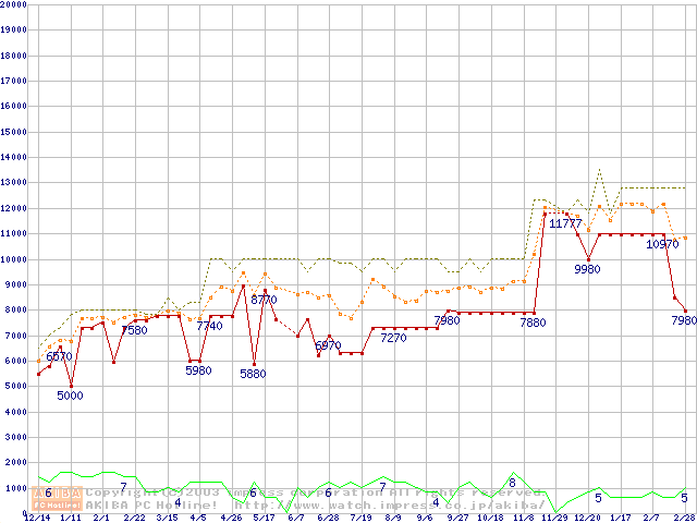 PC100 SDRAM DIMM CasLatency=2の最安値推移