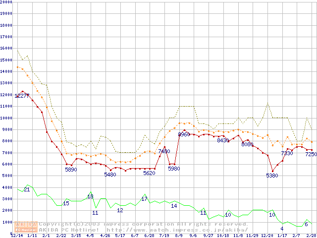 PC2100(DDR266) DDR SDRAM DIMM(CL 2.0)の最安値推移