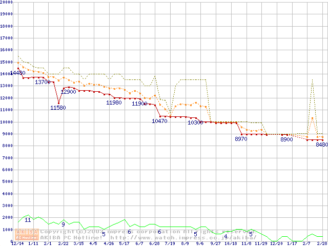 WD Caviar(Special Edition) (7200rpm,UltraATA/100,8MB)の最安値推移