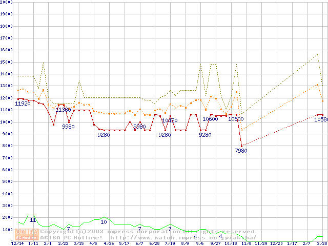 PC800-40 DRDRAM RIMM ECC対応の最安値推移