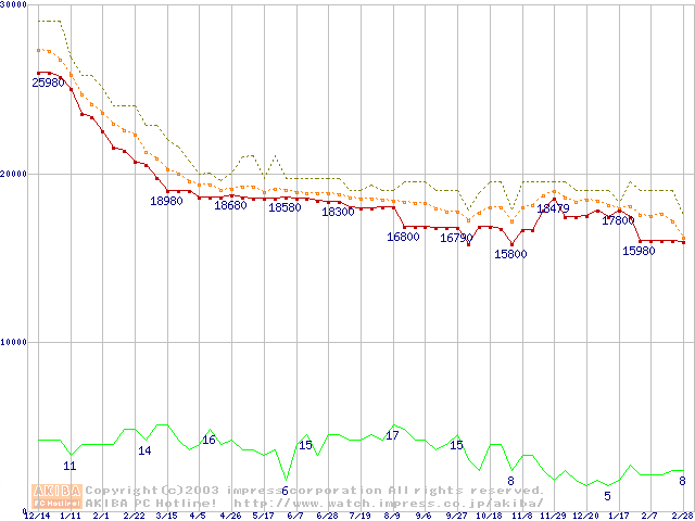 MKシリーズ (9.5mm,4200rpm,2MB,FDB,30GB/Platter)の最安値推移