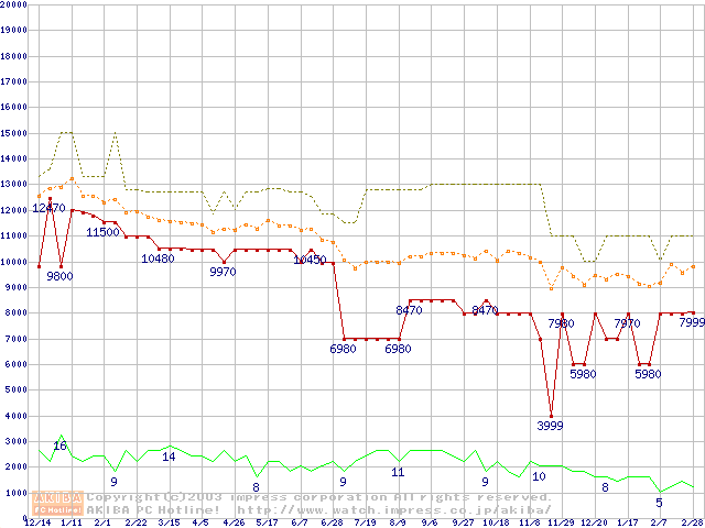 PC1066 DRDRAM RIMM4200(32bit)の最安値推移