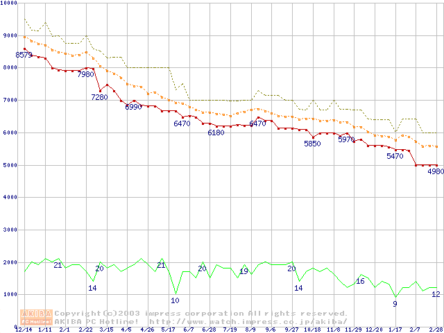 Fireball 3 (5400rpm,UltraATA/133,2MB,FDB)の最安値推移