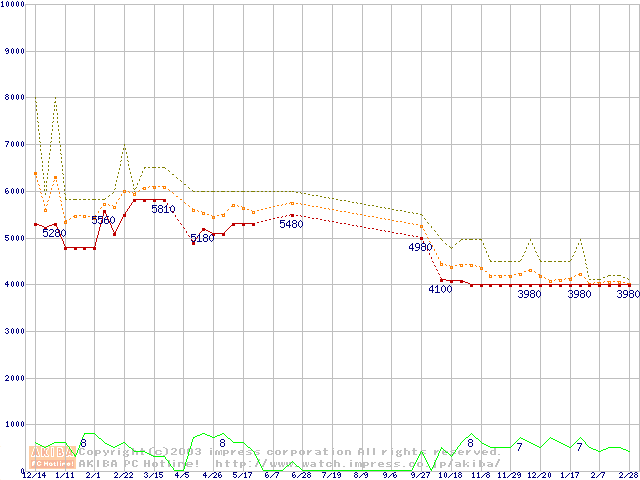 Socket 370・FSB 100MHzの最安値推移