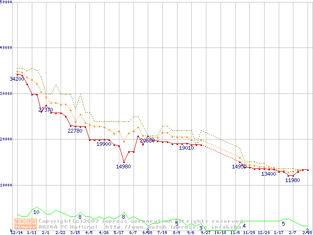 WD Caviar (7200rpm,UltraATA/100,2MB)の最安値推移