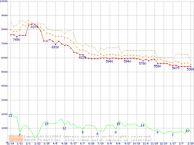 DiamondMax Plus 8 (7200rpm,2MB,UltraATA/133,FDB)の最安値推移