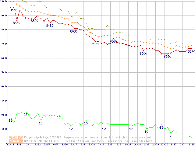 DiamondMax 16 (5400rpm,UltraATA/133,2MB,80GB/Platter,FDB)の最安値推移