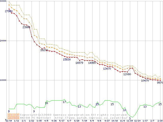 DiamondMax Plus 9 (7200rpm,2MB,UltraATA/133,FDB)の最安値推移