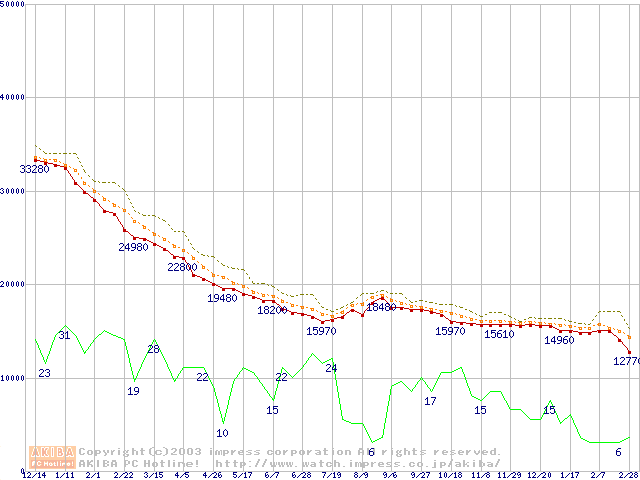 Deskstar 180GXP (7200rpm,8MB,UltraATA/100,FDB)の最安値推移
