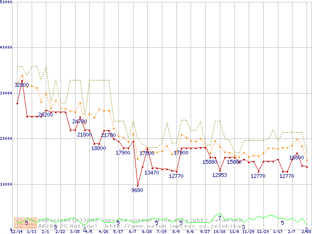 PC3500(DDR433) DDR SDRAM DIMMの最安値推移