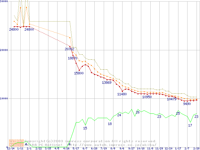 DiamondMax Plus 9 (7200rpm,8MB,SerialATA/150,FDB)の最安値推移