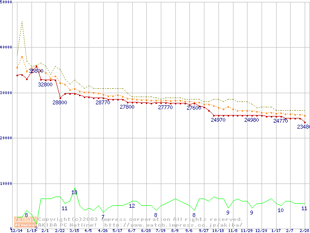 Socket 604 (micro-PGA,FSB 533MHz,L2 512KB,Prestonia)の最安値推移