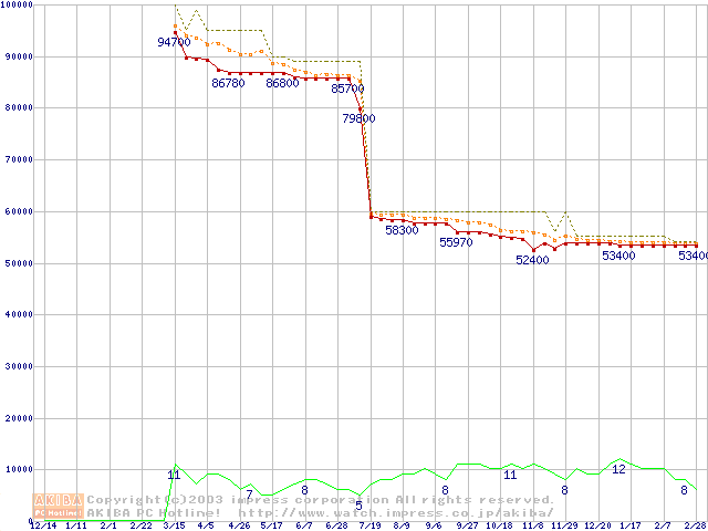 Xeon 3.06GHz(FSB533) リテールパッケージの価格推移