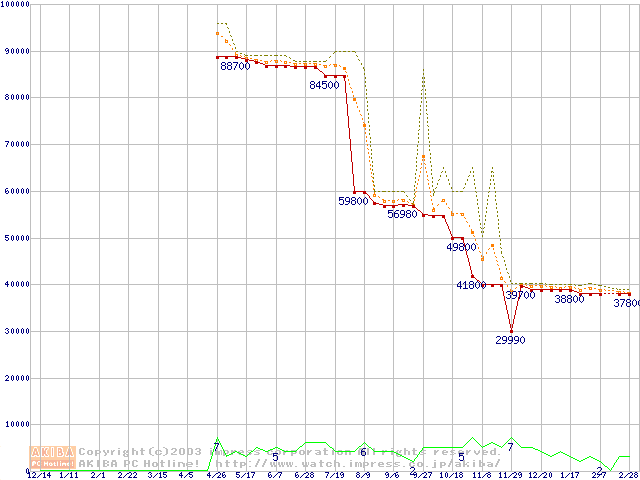 Socket 940 (PGA,FSB 800MHz,L2 1MB,SledgeHammer)の最安値推移