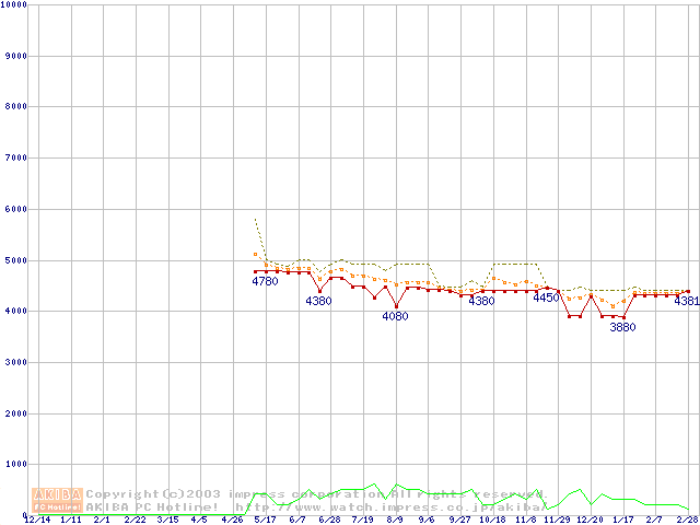 Socket 370 (PGA,FSB 133MHz,L2 64KB,Nehemiah)の最安値推移