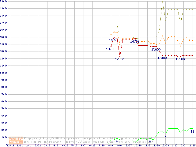 PC3200(DDR400) DDR SDRAM DIMM ECC対応 Registeredタイプの最安値推移