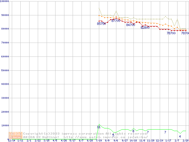 Socket 604 (micro-PGA,FSB 533MHz,L2 512KB,Prestonia)の最安値推移