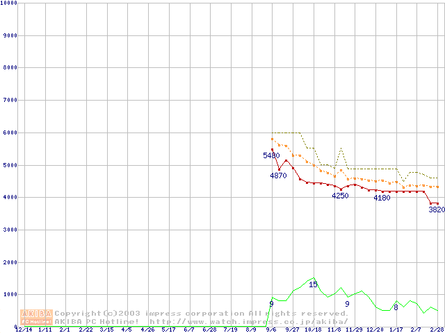 Socket A (OPGA,FSB 266MHz,L2 64KB,Applebred)の最安値推移
