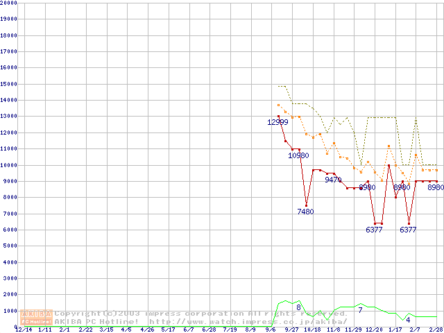 PC4300(DDR533) DDR SDRAM DIMMの最安値推移