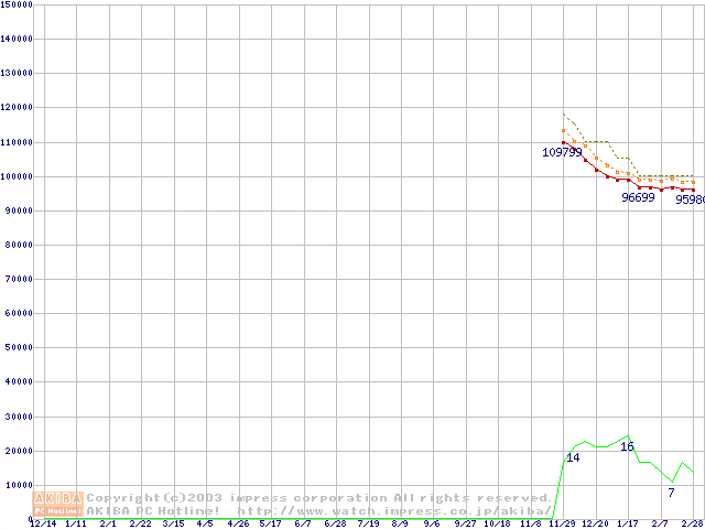 Socket 478 (micro-PGA,FSB 800MHz,L2 512KB,L3 2MB,Hyper-Threading,Gallatin)の最安値推移