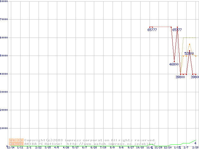 PC3200(DDR400) DDR SDRAM DIMM ECC対応 Registeredタイプの最安値推移