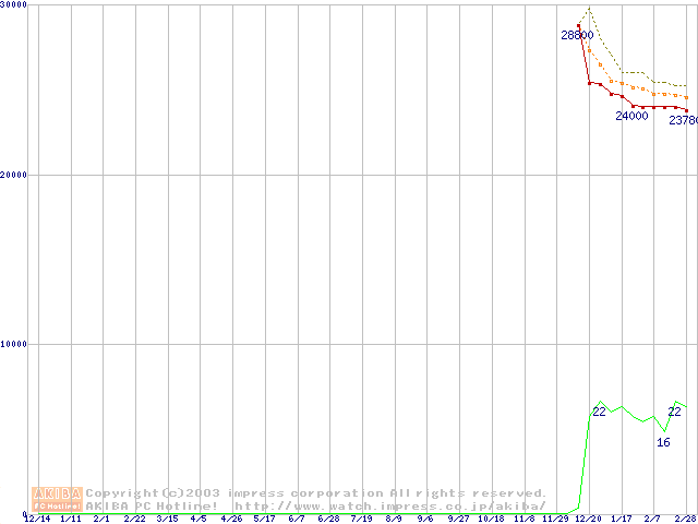 Athlon 64 3000+(2GHz,L2 512KB) リテールパッケージの価格推移