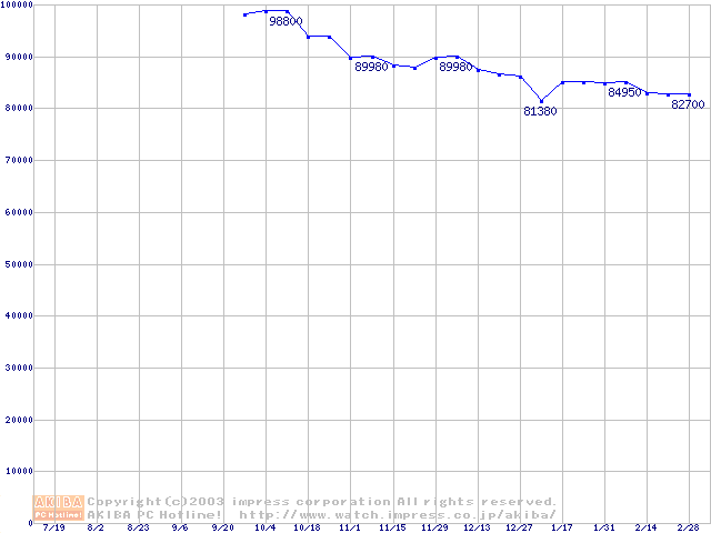 | [↑前グラフ]: | Socket 754 (PGA,FSB 800MHz,ClawHammer)の最安値推移 |